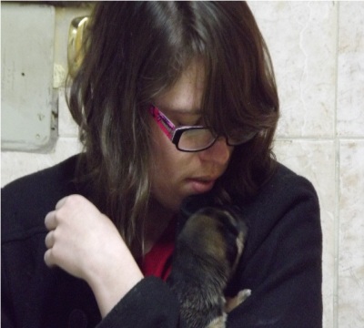 Rachel Langham giving love to one of new rescued puppy and she named him Will